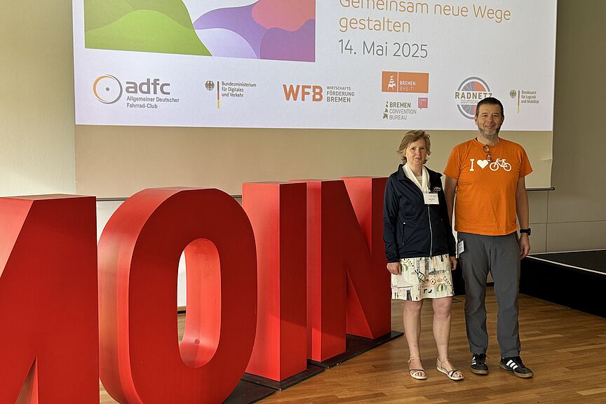 Vom 13. bis 15. Mai 2025 trafen sich in Bremen Expert:innen und Entscheider:innen aus Tourismus und Radverkehr zum 2. ADFC-Radtourismuskongress. Seitens ADFC Landesverband waren die beiden stellv. Vorsitzenden Amelie Döres und Lars Danzenbächer vor Ort. Es wurden div. Vorträge und Workshops angeboten, wie Radtourismus und Radverkehrsplanung neu zu denken ist. Weitere Informationen sind im beigefügten Programm zu finden.